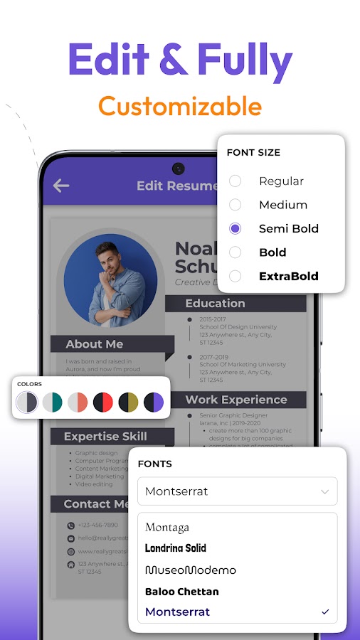 CV Maker & Resume PDF Convert — интересное приложение для создания профессионального резюме резюме для заявления о приеме на работу с использованием различных шаблонов за несколько минут. Такое продвинутое приложение для создания резюме содержит более 30 дизайнов резюме для соискателей с различными коллекциями цветов. Вы можете изменить цвет текста для каждого шаблона в соответствии с вашими требованиями. Сопроводительные письма можно легко создать в Curriculum vitae Resume Builder, используя несколько шаблонов. Resume Maker помогает с вашими личными данными в нескольких проектах для создания и редактирования резюме, сопроводительных писем и писем об увольнении.