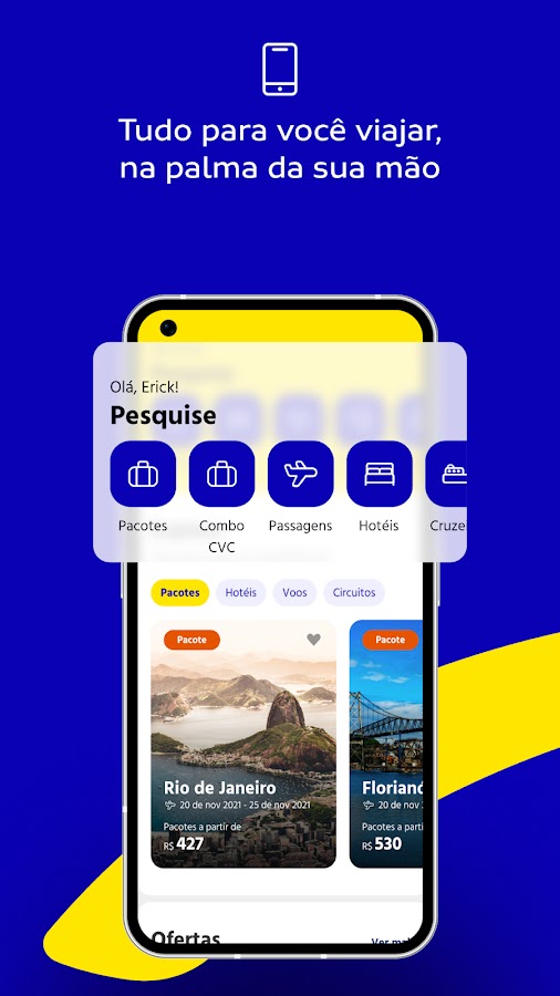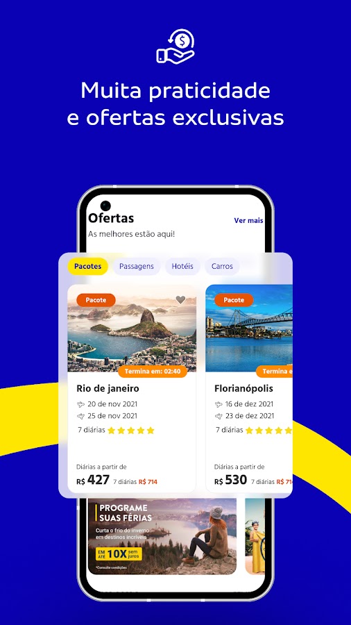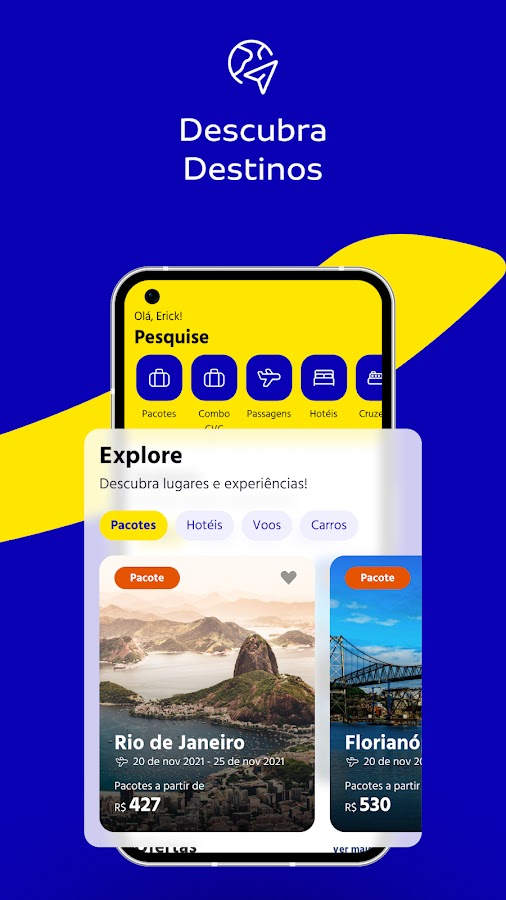 В приложении CVC вы найдете туристические предложения и авиабилеты туда и обратно по выгодным ценам, чтобы вы могли наслаждаться поездками и турами, экономя при этом деньги! Здесь у нас есть международные туристические пакеты, международные билеты, а также дешевые варианты путешествий по Бразилии!