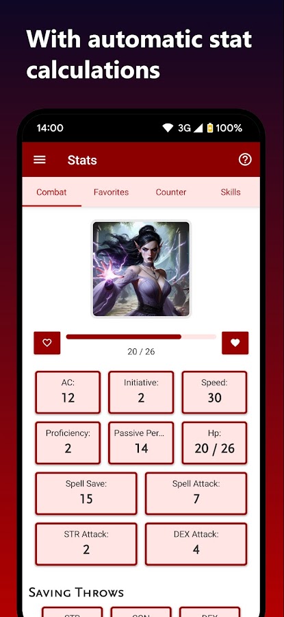 • Книга заклинаний с вашими известными заклинаниями и отслеживание слотов заклинаний