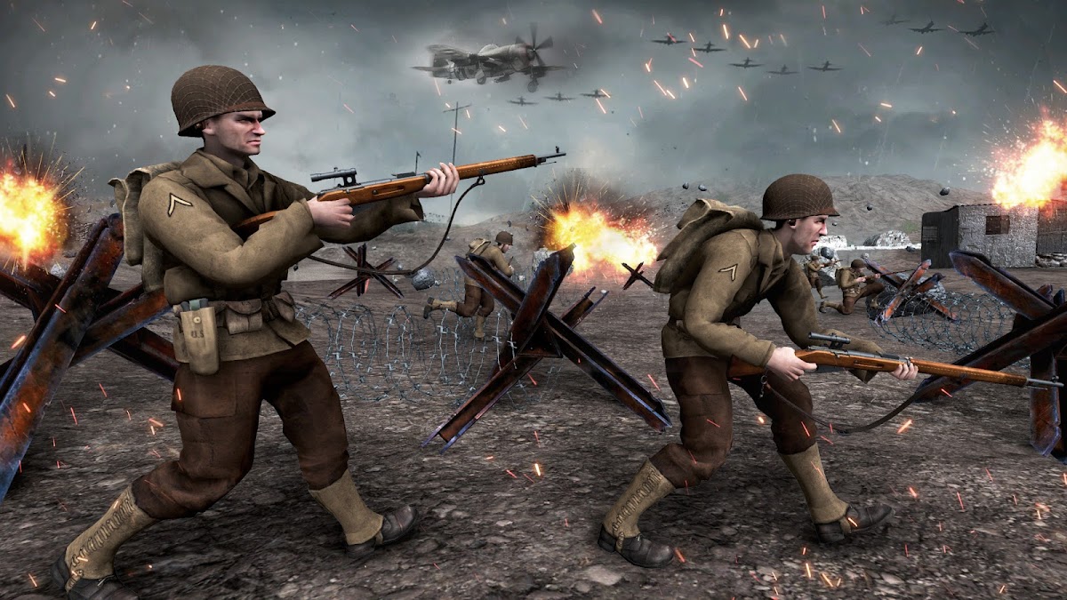 Поднимитесь, как герой ворваться в бой в окопах на пляже Омахи в Нормандии. Используйте винтовку, пулемет для борьбы с вражескими силами, стрелка и снайперов. Освободите землю от вражеского взвода, сидящего за тяжелыми пулеметами. Столкнитесь с крупнейшим морским вторжением в историю Второй мировой войны. Возглавьте армейский батальон и сражайтесь с вражеским взводом на высадках в Нормандии в игре D-Day ww2. Станьте частью пехотных полков, чтобы сражаться на пляже Омахи в игре World War 2. Играй в новейшую игру на выживание в битвах в D-Day ww2, как никогда раньше. Начните вторжение с союзными силами, остерегайтесь бомбардировок из-за штурма. Выведите свои взводные войска на берег, укрывайтесь и сражайтесь с вражескими силами, используя винтовку и пулеметы. Спасайтесь от минных полей, укрывайтесь за металлическими штативами и перерезайте колючую проволоку, чтобы проникнуть в траншеи. Сражайтесь на передовой с мужеством и доблестью. Играй в лучшую игру-шутер от третьего лица на планшетах и смартфонах с ОС Android. Окунитесь в самый жаркий день Второй мировой войны и доведите обучение армии до предела!