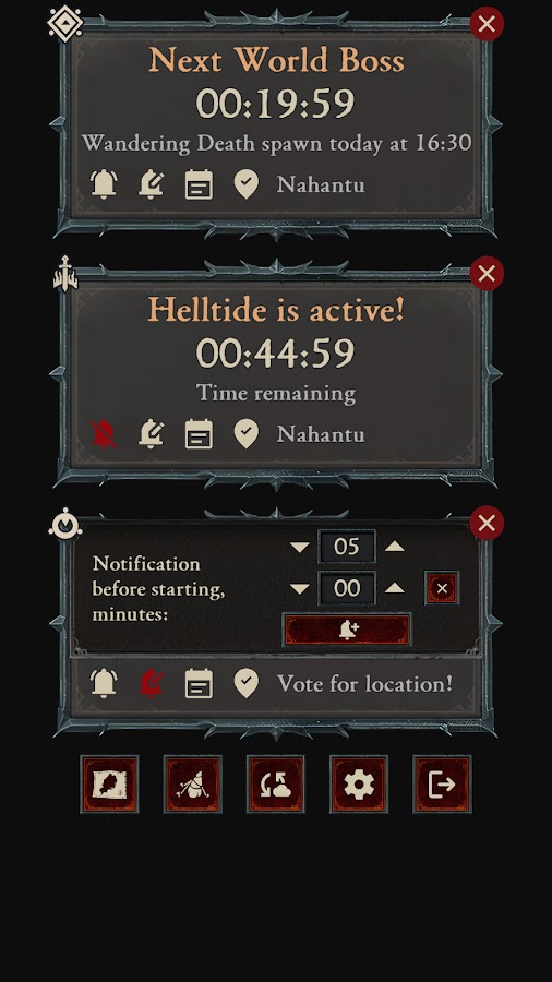 «D4 Events Time Tracker» предлагает удобный интерфейс и простую навигацию, чтобы вы могли сосредоточиться на игре. Важной функцией является настройка уведомлений, которые будут отправляться на ваше устройство перед началом каждого события (Мировые Боссы, Адские Приливы, Легионы). Это означает, что вы всегда сможете вовремя войти в игру и подготовиться.