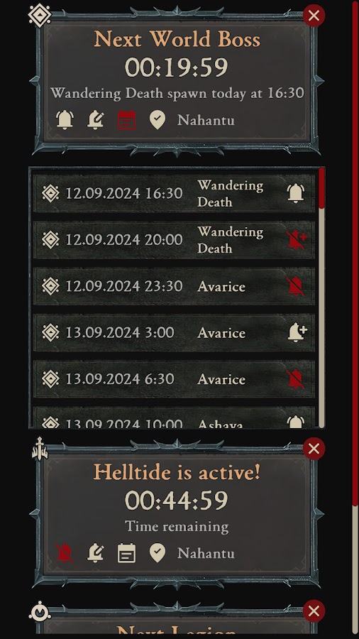 Не пропустите ни одного события с мировым боссом, войной в Хеллтайде или Легионе! Скачайте «D4 Events Time Tracker» сегодня и получите полный контроль над событиями и картой Святилища!