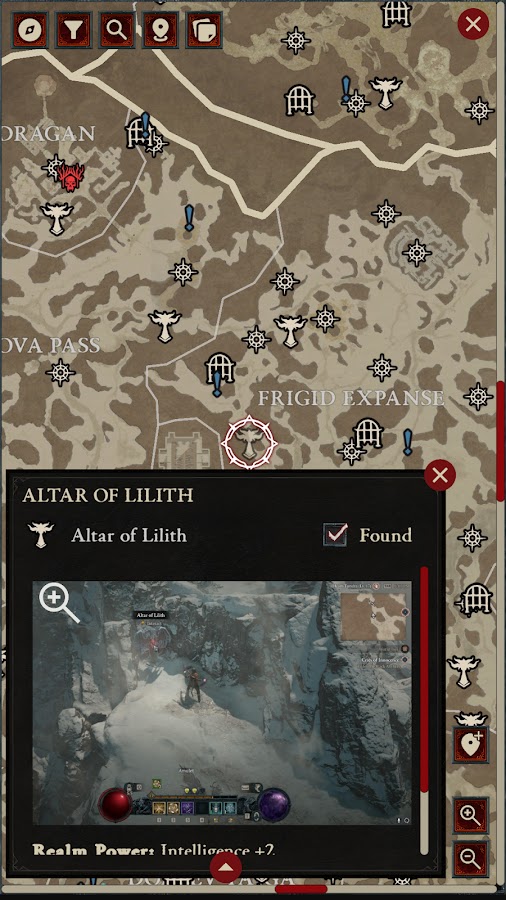 • Создавайте предустановленные фильтры: настраивайте отображение карты под свои нужды. Сохраняйте комбинации фильтров (например, отображение только Алтарей Лилит и Подземелий) и быстро переключайтесь между ними для максимальной эффективности.