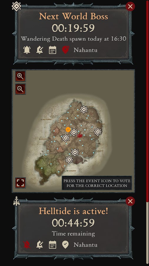 Никогда не пропускайте мировых боссов и всегда будьте в курсе всех ключевых событий в Санктуарии благодаря нашим точным таймерам и мощной интерактивной карте!