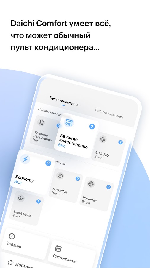 Теперь функционал пульта управления максимально точно отображает состояние кондиционера и особенности управления его функциями.