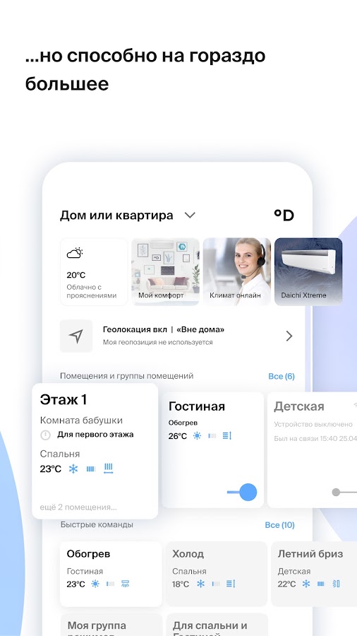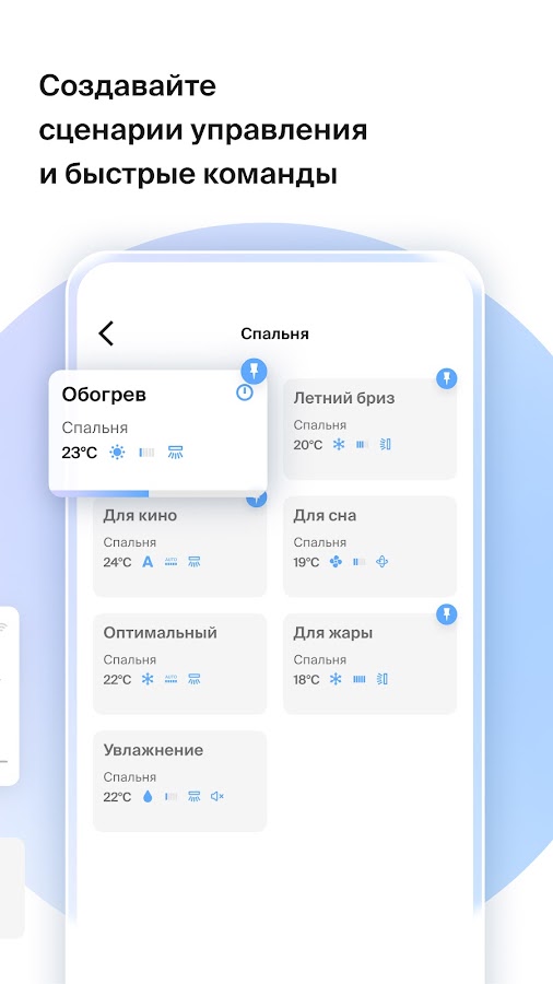 Сохраняйте настройки работы кондиционера как быстрые команды. Включайте кондиционеры в одной или нескольких комнатах со своими настройками по одному