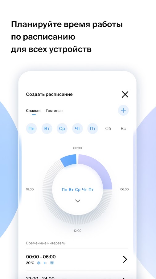 Управляйте режимом работы кондиционера (охлаждение, обогрев, вентиляция, осушение, авто-режим)