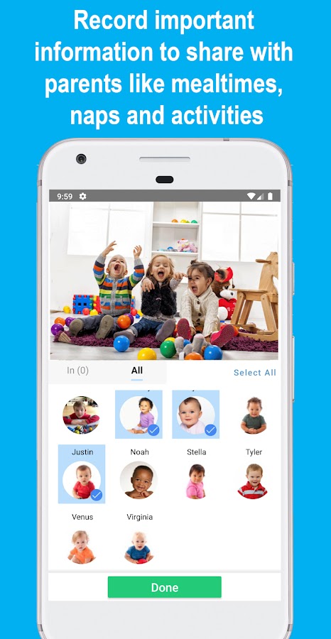 Записывайте более 30 различных видов деятельности, автоматически отправляйте родителям электронные письма с ежедневными обновлениями и следите за тем, чтобы ваш детский сад соблюдал местные правила.