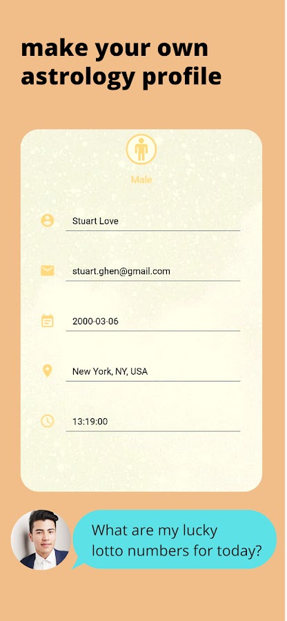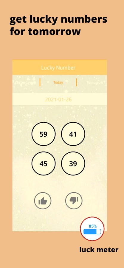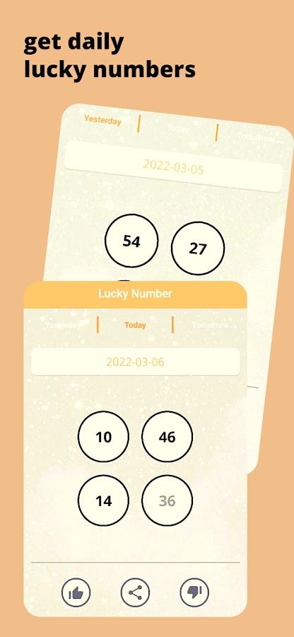 Получайте ежедневное состояние с помощью счастливых чисел, основанных на чтении вашей карты рождения настоящими астрологами и нумерологами. Вы будете получать в общей сложности 4 числа от 00 до 99 ежедневно.