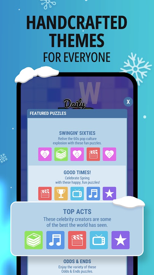 Темы головоломок включают знаменитостей, фильмы, телешоу, спорт и книги.
