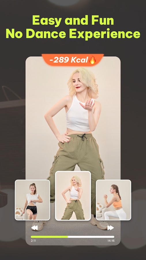 — Профессиональная команда танцоров создает танцевальные тренировки и адаптирует 28-дневный план в зависимости от вашего уровня физической подготовки.