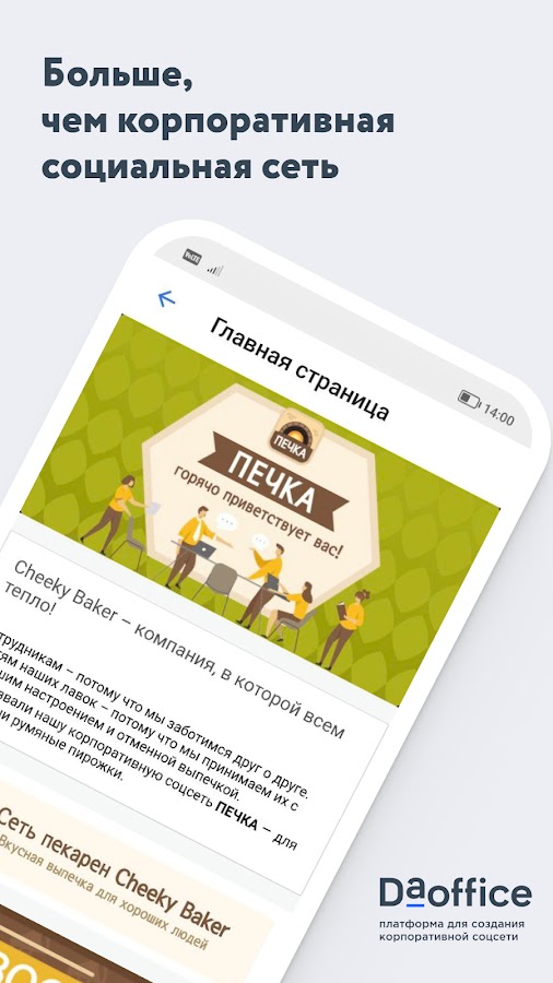 Даофис – это корпоративная социальная сеть для совместной работы внутри компании. С ее помощью сотрудники могут быстро находить контакты своих коллег, получать ответы на вопросы, делиться экспертной информацией, обмениваться документами, координировать работу проектных групп, генерировать и обсуждать идеи.