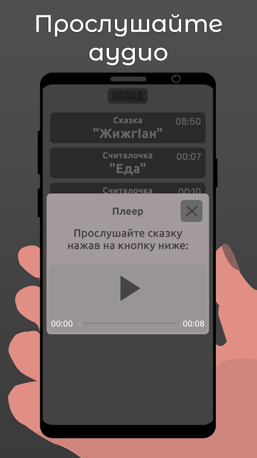 • Удобный аудиоплеер для прослушивания сказок, рассказов, стихотворений и поэм