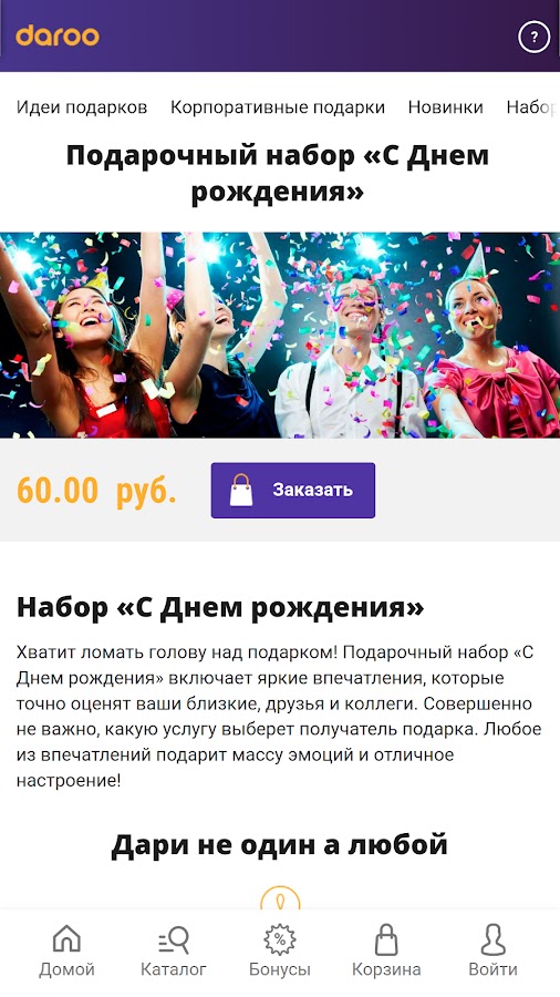 Скачайте приложение DAROO: маркетплейс впечатлений для Android бесплатно - последняя версия (1.0.2) уже доступна для установки на ваш телефон или планшет.