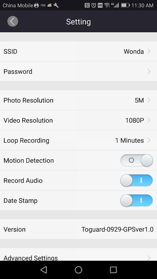 Вождение приложения управления рекордером, поддержка Wi-Fi напрямую подключить тир Cam для предварительного просмотра, фотографирование, запись видео, загрузить их на локальный для воспроизведения и других операций.