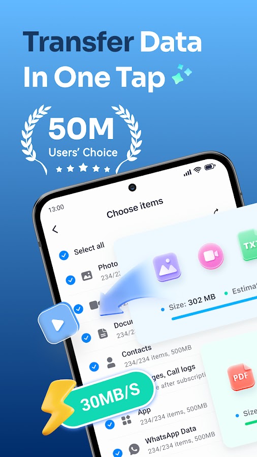 Поддерживает копирование нескольких типов телефонных данных, в том числе: контактов, изображений, музыки, видео, аудио, расписания, документов, приложений с Android на устройство iOS или с iOS на Android. «Копировать мои данные» и «Перенести мои данные» не может быть проще!