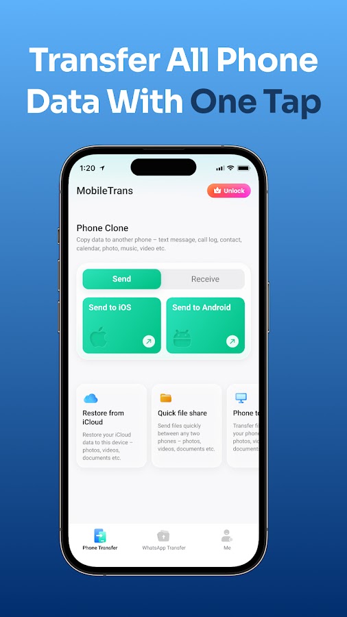 MobileTrans — это приложение для передачи телефонных данных с самой быстрой кросс-платформенной скоростью. Это мобильное приложение для передачи данных может безопасно и плавно передавать как ваши телефонные данные, так и данные WhatsApp и бизнес-данные WhatsApp между устройствами iPhone и Android без ущерба для качества!