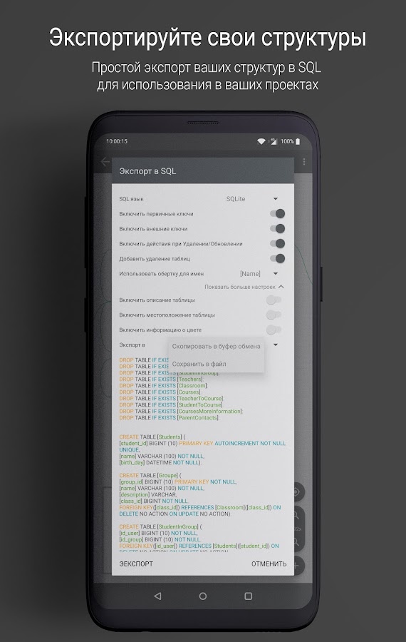 Для создания SQL просто нажмите одну кнопку и используйте SQL в своей базе данных.