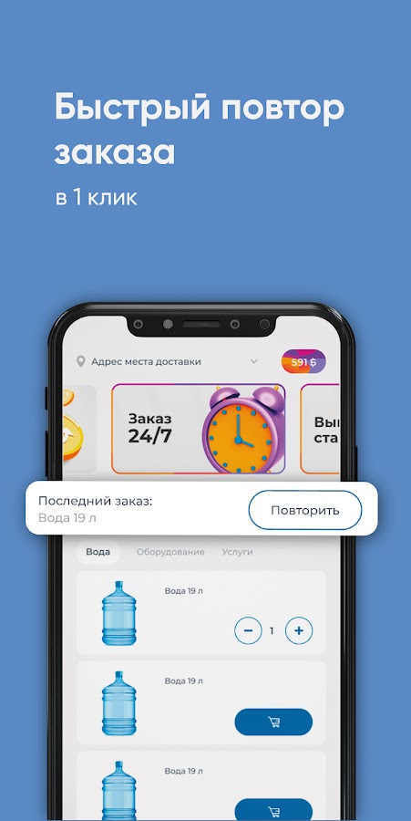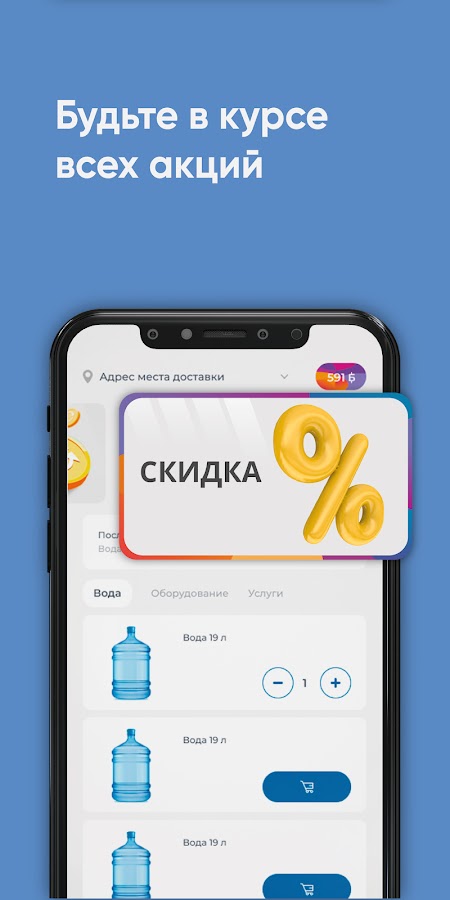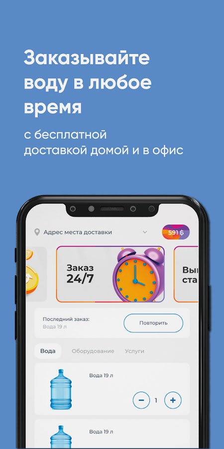 Скачайте бесплатное приложение на телефон и заказывайте чистую воду в удобное время!