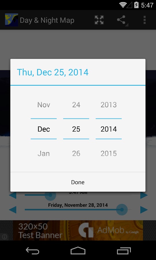 Это приложение отображает карту мира, что регионы дневного света и ночи.