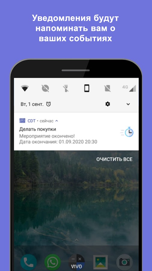 ★ Вы можете настроить некоторые уведомления, чтобы получать напоминания ежедневно, еженедельно или ежемесячно. И когда событие заканчивается, вы также получите уведомление.
