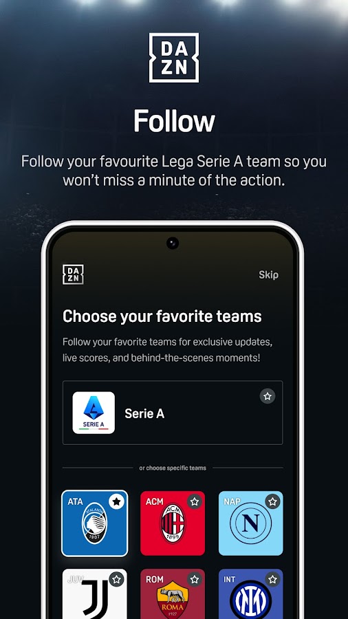 Присоединяйтесь к сообществу. Общайтесь с фанатами, делитесь своей страстью и празднуйте каждую победу вместе. На DAZN каждая игра — это общественное событие.