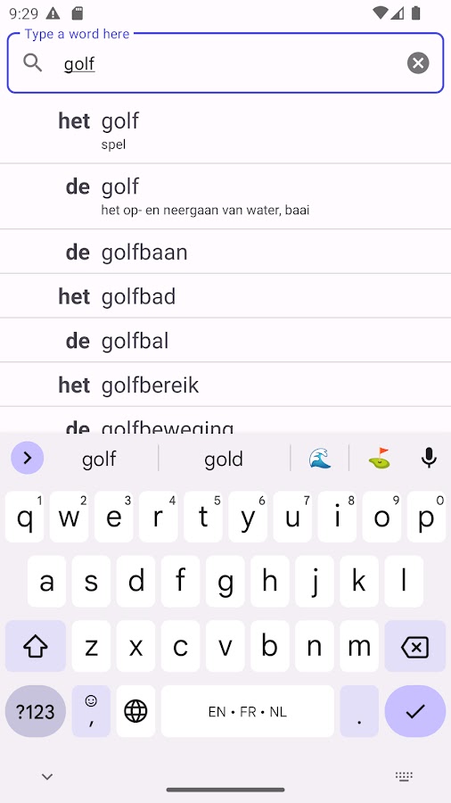 Введите первые несколько символов существительного и сразу же увидите статью. Приложение содержит словарь, содержащий более 73 000 существительных. При желании вы можете отобразить перевод или определение существительного.