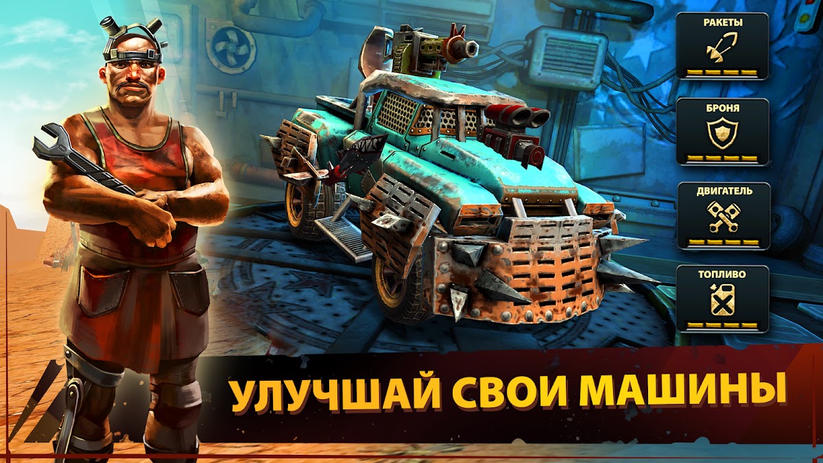 Уничтожай все на своем пути не жалея ракет и патронов в опасном мире пост-апокалипсиса Новой Америки, где правят враждующие группировки на колесах!