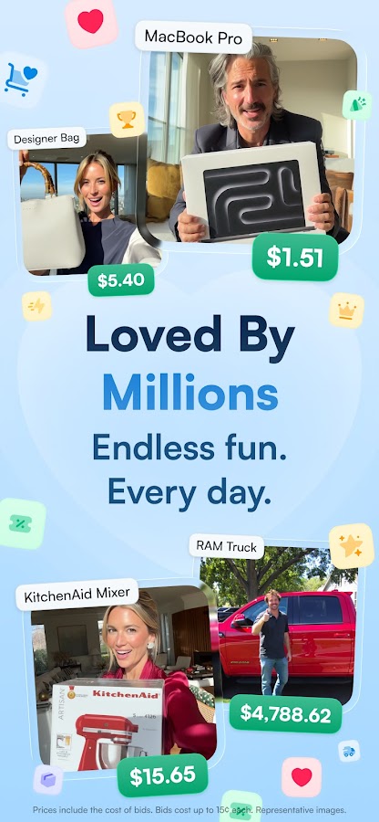 DealDash® является зарегистрированным товарным знаком США. Все права защищены. Скачивая приложение, вы соглашаетесь с нашими Условиями использования, Политикой конфиденциальности и Правилами платформы.
