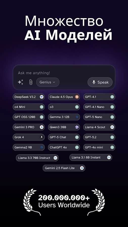 • ИИ-чат и текстовый помощник — генерируйте идеи, пишите тексты, переводите и программируйте с помощью передовых языковых моделей.