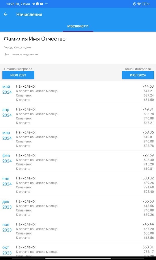— просматривать истории начислений и оплат;