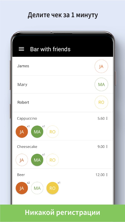 Дели счет из ресторана 📃, чек в кафе, кассовый чек, магазинный чек или общий счет на совместные покупки быстро и легко всего в несколько шагов: