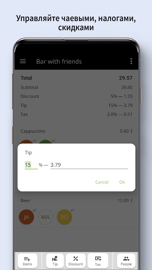 ☆ калькулятор чаевых: автоматический расчет чаевых в зависимости от сумма счета каждого человека