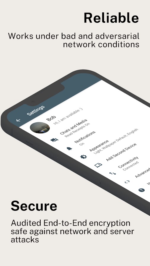 • Безопасный. Проверенное сквозное шифрование защищает от сетевых и серверных атак.
