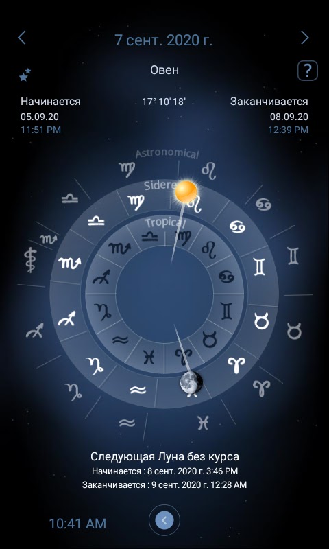 Исследуйте разницу между солнечным и лунным зодиаками. Луна меняет знак зодиака каждые 2-3 дня. Посмотрите, как это работает!