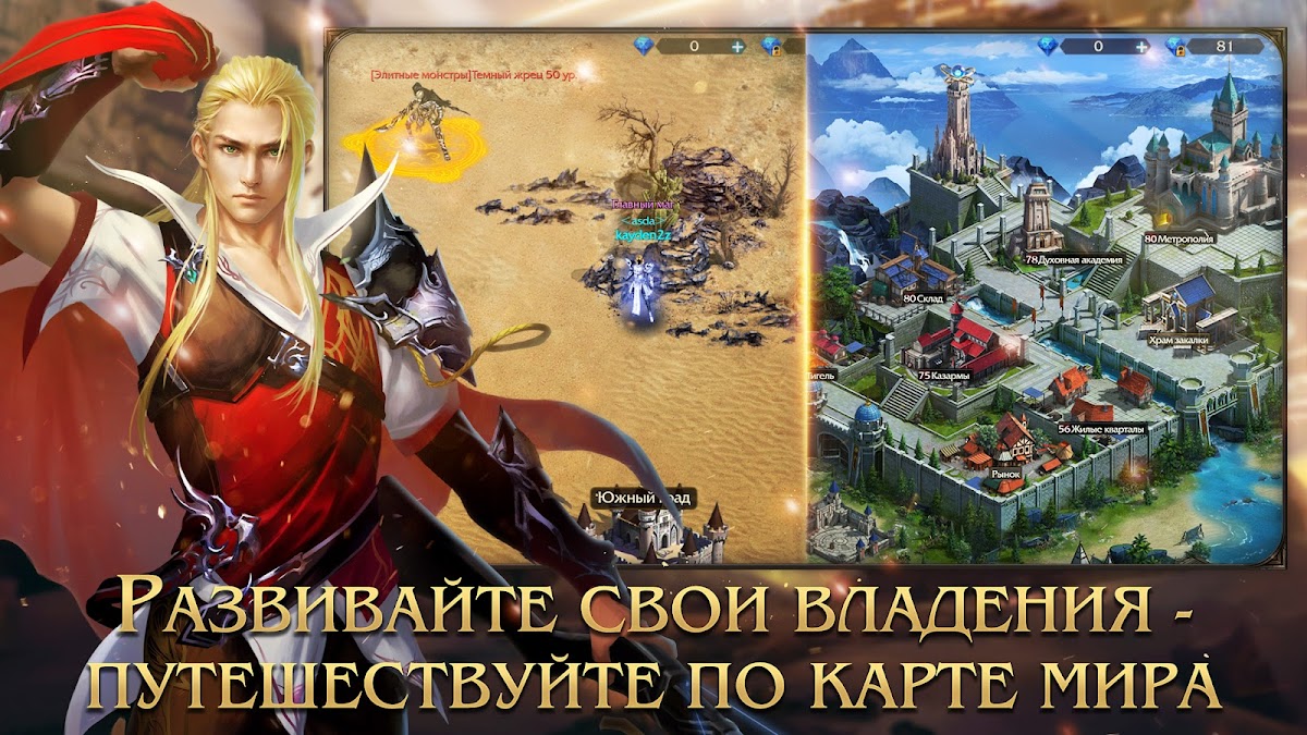 ✔️ Менеджмент замка и армии — развивайте строения, усиливайте гарнизоны и формируйте армию, которая определяет ваше влияние в ММО среде.