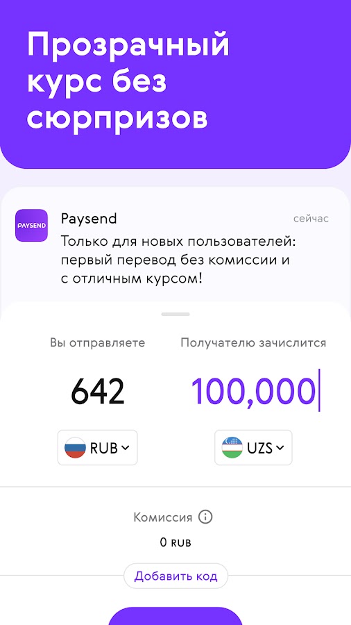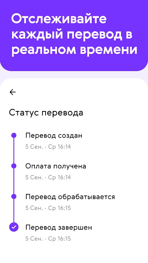 Забудьте о сложностях традиционных денежных переводов. С Paysend вы можете легко отслеживать транзакции, пользоваться мультивалютными платежами и мгновенно отправлять деньги прямо со своего смартфона.