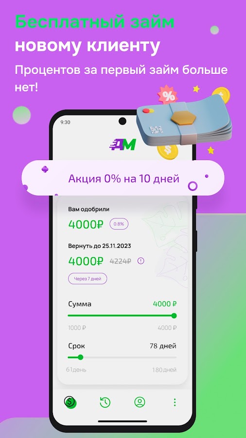 • Зарегистрироваться и получить первый заём новому клиенту под 0%;