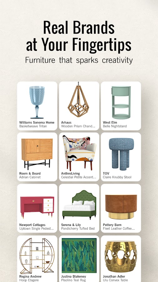 — Создавайте дизайн комнат своей мечты с помощью мебели и декора от более чем 60 ведущих брендов и дизайнеров.