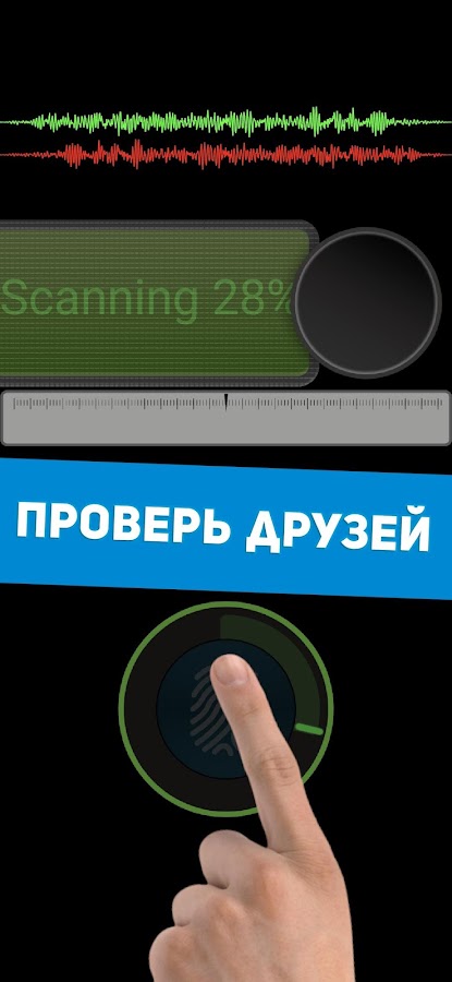 👈 Сканер пальцев: Приложите палец к сканеру детектора, чтобы начать процесс детекции лжи.