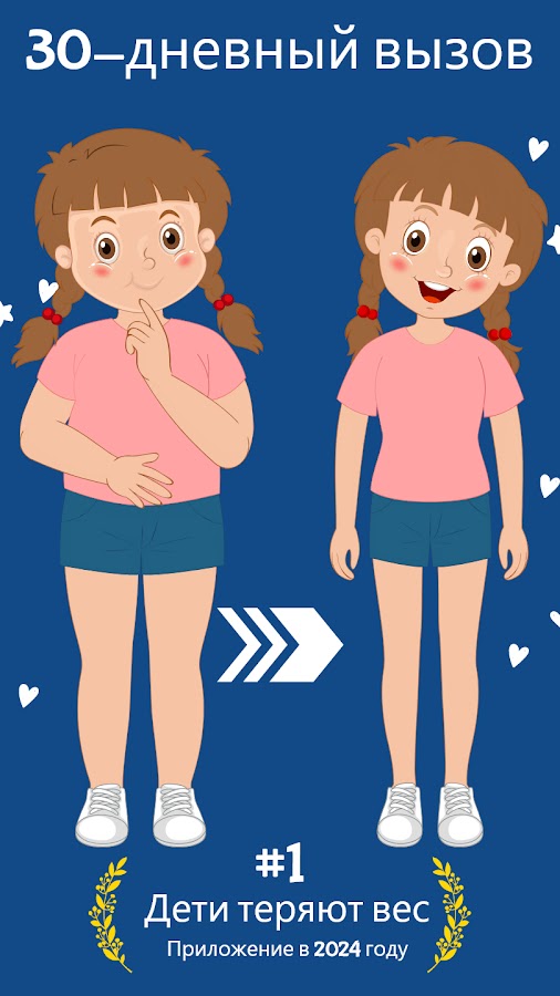 Это приложение «Упражнения для детей для похудения» предлагает три разные 30-дневные детские тренировки для девочек и мальчиков: