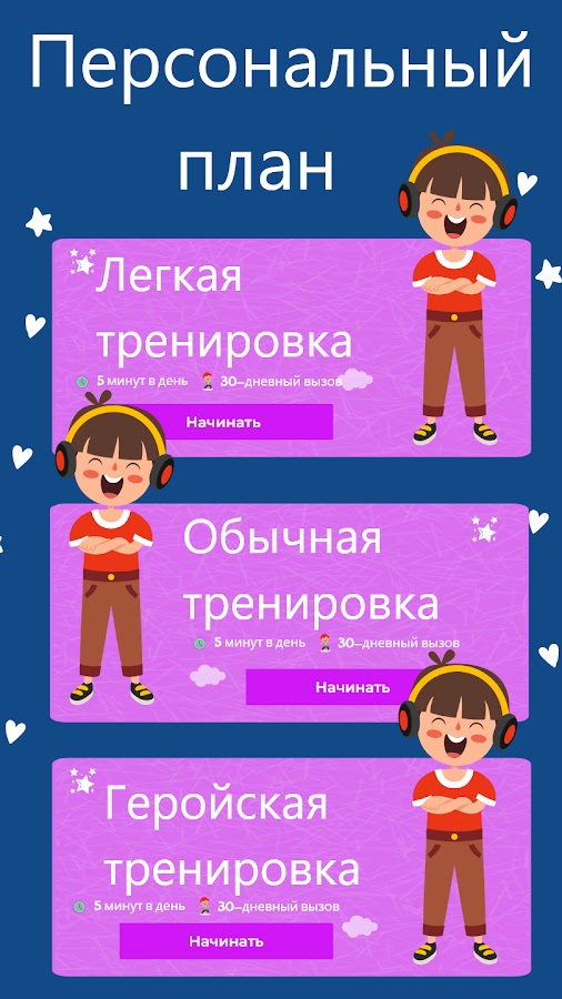 Тренировки не должны быть скучными — вот почему это упражнение для похудения для детей добавило веселья! Наше 30-дневное бесплатное приложение «Фитнес для детей» с классной анимацией, веселой фоновой музыкой и голосовыми подсказками, которые понравятся детям, поможет им оставаться энергичными и сосредоточенными на протяжении всей тренировки.