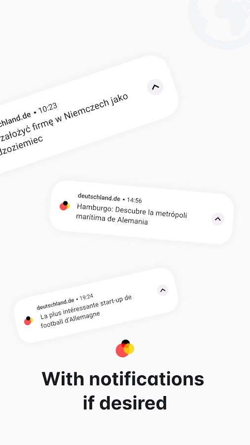 Наше приложение также идеально подходит в качестве ежедневного компаньона, если вы хотите погрузиться в немецкую культуру и язык. Узнайте все о жизни в Германии, таких городах, как Берлин, и немецкой внешней политике — в то же время расширяя свой словарный запас и улучшая способность понимать устную и письменную немецкую речь.