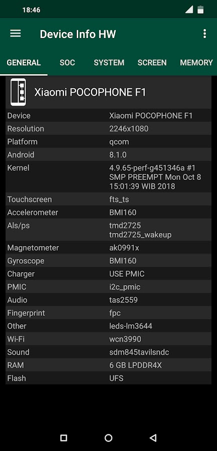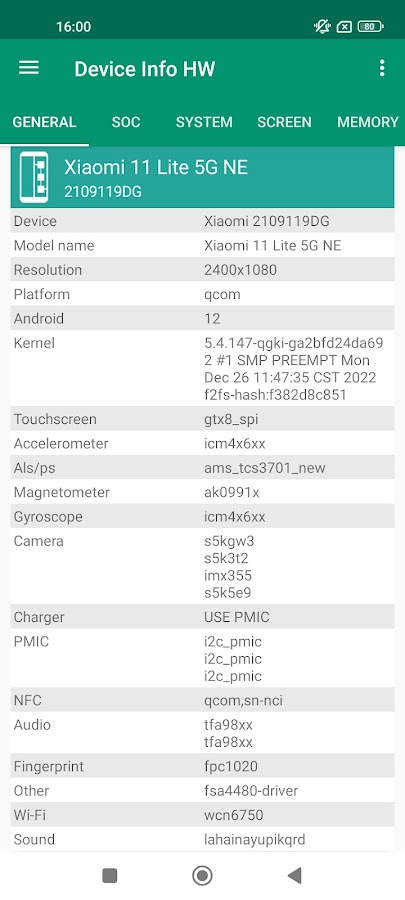 Теперь обнаружение поддерживается для ЖК-дисплея, сенсорного экрана, камер, датчиков, памяти, вспышки, аудио, nfc, зарядного устройства, wi-fi и аккумулятора; если это возможно для вашего устройства.