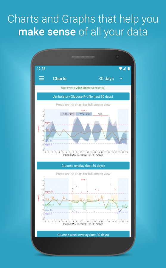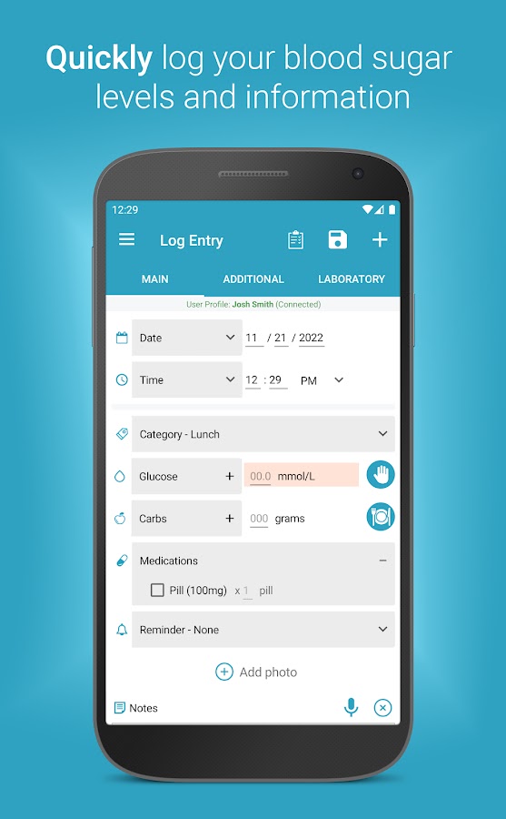 Разработанное для телефонов и планшетов это приложение создано для того чтобы помочь диабетикам лучше управлять своим диабетом и держать его под контролем. Пользователи могут регулярно записывать свои показатели в дневник. Приложение отслеживает практически все аспекты лечения диабета, предоставляет подробные отчеты, графики и статистику которые можно отправить лечащему врачу с помощью электронной почты. Представлены различные инструменты для диабетиков которые помогут им определить тенденции уровня глюкозы в крови, а также рассчитать значения короткого и пролонгированного болюсного инсулина с помощью высокоэффективного болюсного калькулятора.