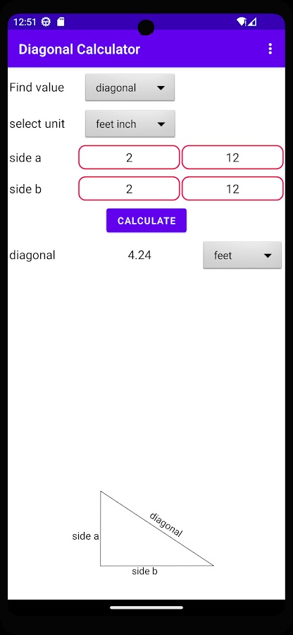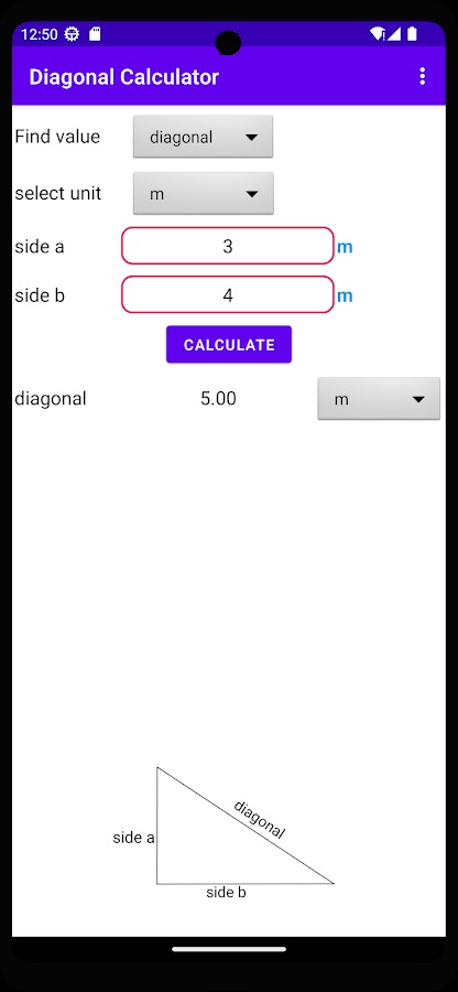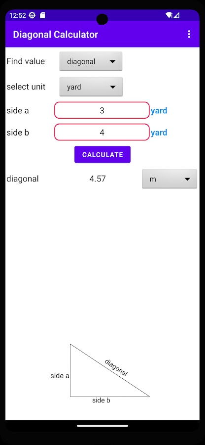 Скачайте приложение diagonal calculator для Android бесплатно - последняя версия (2.6) уже доступна для установки на ваш телефон или планшет.