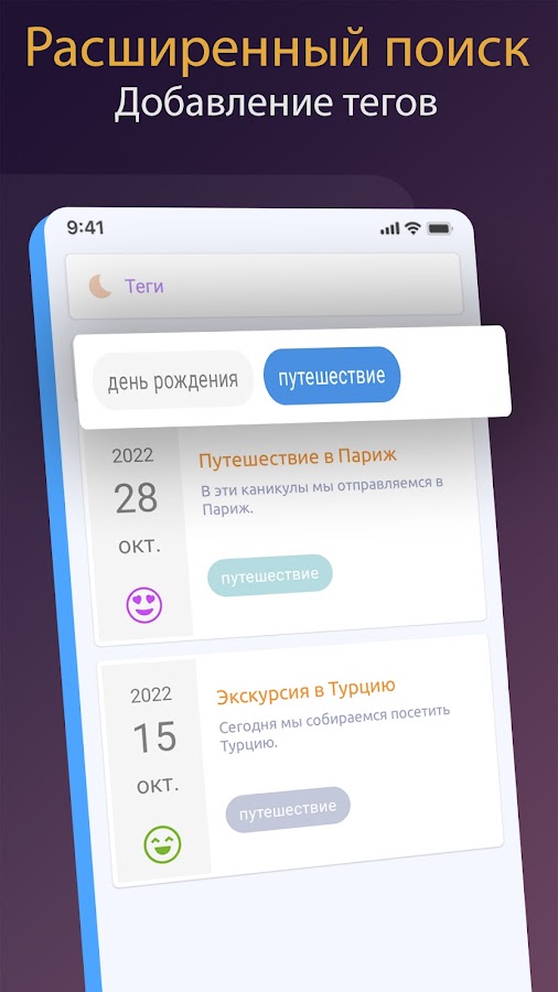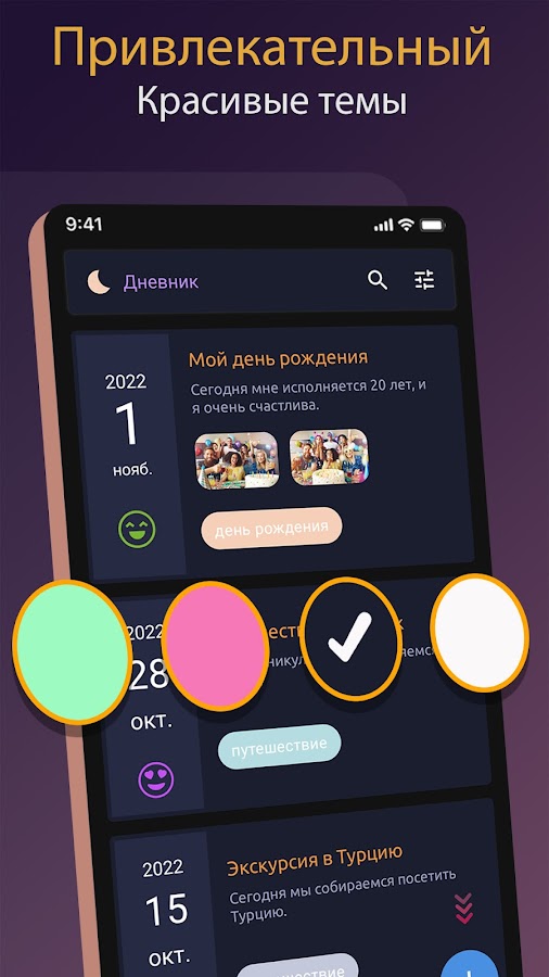 📚 «Личный дневник» — это цифровой дневник, который позволяет записывать мысли и чувства. Существует множество различных типов онлайн-дневников, каждый из которых имеет свои особенности. В Личный дневник включены некоторые популярные функции, такие как список дел, теги (группы слов, используемые для запоминания определенных элементов), отслеживание настроения, возможности настройки (например, шрифты и цвета), стикеры, точки, фотожурнал, голосовой дневник, а также функции автоматического/ручного резервного копирования.