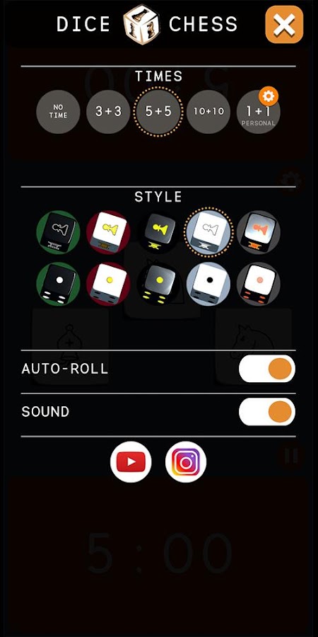 У нас есть пять скинов для вас. Кроме того, вы можете использовать шахматные фигуры или цифры на кости. Play Вам решать играть с контролем времени или без него. ⏰