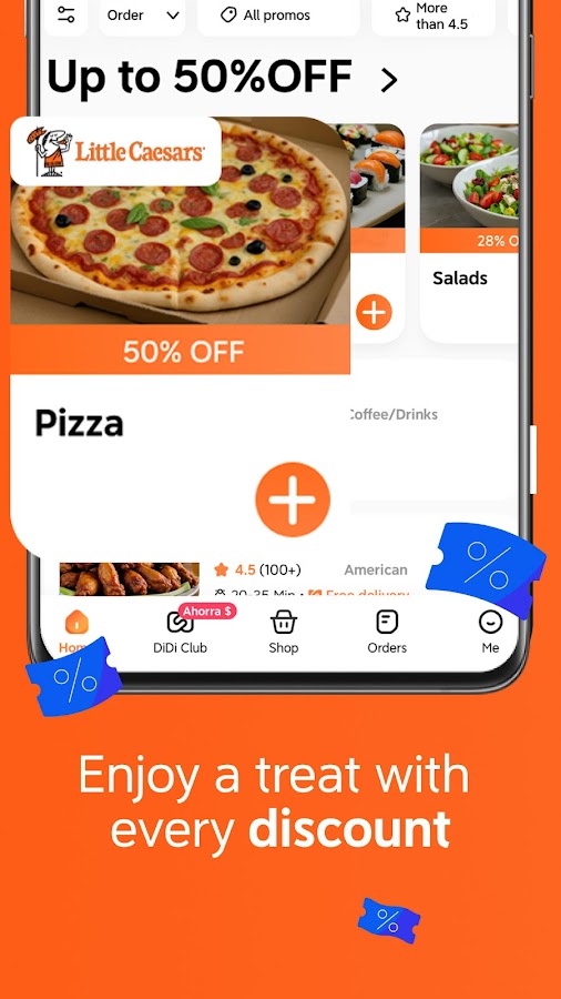 Вы жаждете суши, пиццы или салата? Загрузите DiDi Food прямо сейчас, чтобы воспользоваться нашими акциями и скидочными купонами: получите скидку до 50% на заказ с доставкой!