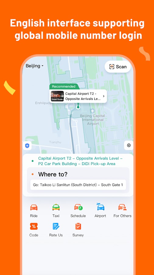 Пользователи, прибывающие в страну, могут легко получить доступ к английской версии сервиса заказа поездок и зарегистрироваться, используя свой номер мобильного телефона.